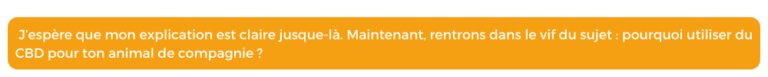 Dans un cas comme dans l’autre, le CBD peut aider ton animal à se détendre et réduire son stress. Il peut être administré aussi bien épisodiquement quelque temps avant la survenue d’un événement stressant, que comme une cure sur une période plus longue.